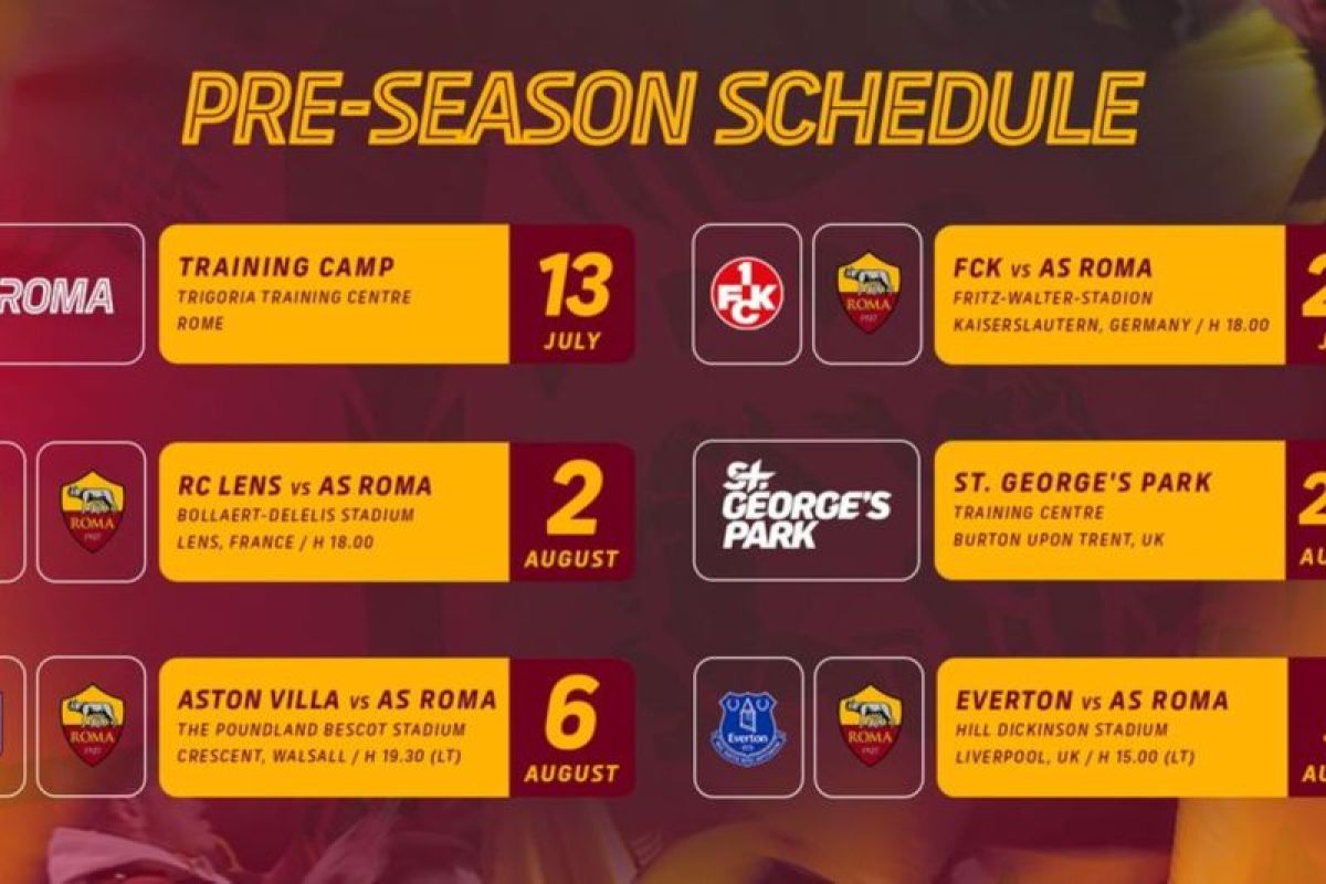 AS Roma telah merilis jadwal pramusim mereka yang padat dan menarik untuk musim 2025/26 di bawah arahan pelatih baru, Gian Piero Gasperini. Tim berjuluk Giallorossi ini akan menjalani serangkaian latihan intensif dan pertandingan persahabatan melawan klub-klub Eropa ternama, sebagai persiapan menghadapi tantangan musim kompetisi yang akan datang. Persiapan yang matang ini diharapkan dapat membawa AS Roma meraih hasil terbaik di musim depan.